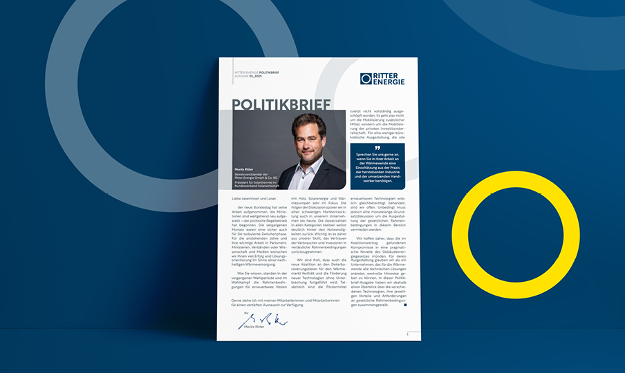 Wir bei Ritter Energie setzen uns aktiv für nachhaltige Energiepolitik ein – zum Beispiel durch den Versand unseres Politikbriefs. Der digitale Brief geht an Personen, die Einfluss auf die Gestaltung der politischen Rahmenbedingungen haben. Unser Ziel: eine frühzeitige Einbeziehung bei diesen Rahmenbedingungen. Durch die politische Arbeit tragen wir dazu bei, den Übergang zu einer klimafreundlichen Energieversorgung zu beschleunigen. Dabei legen wir besonderen Wert auf transparente Kommunikation und konstruktive Zusammenarbeit.